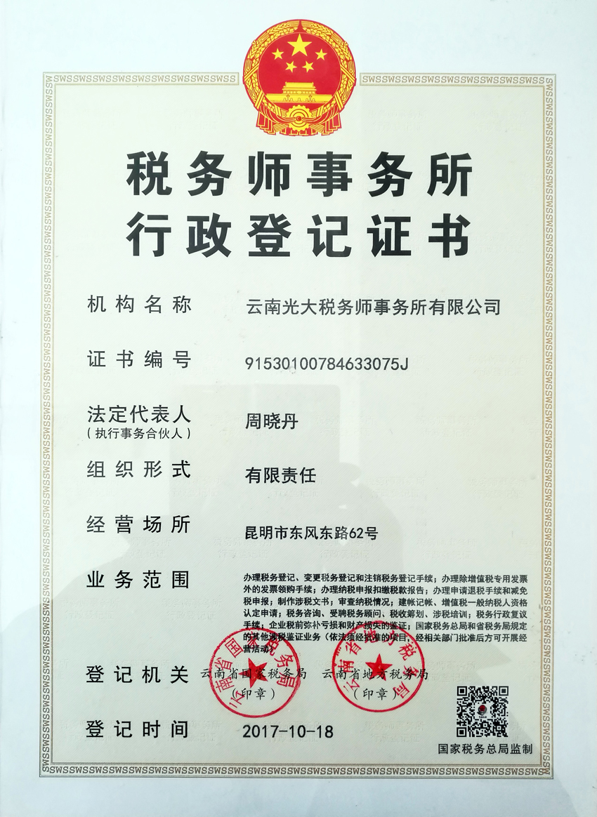 云南光大税务执业证书